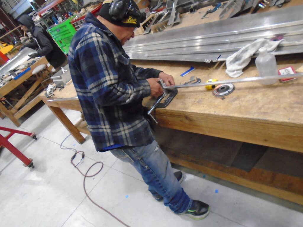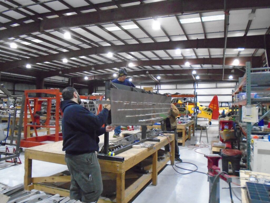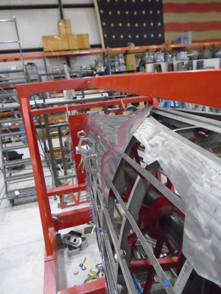 Making adjustments to ribs on horizontal stabilizer while fitting skins