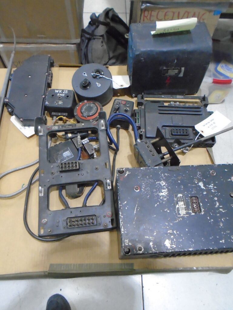Laying out original radio equipment and electrical components for each aircraft during visit from parts consultant (original D-9 console)
