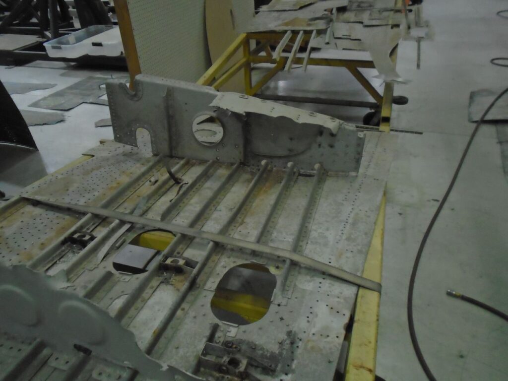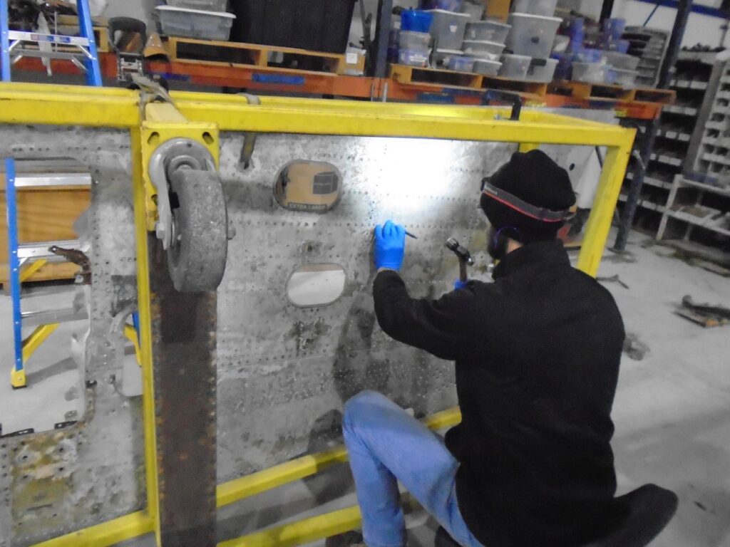 Removing a skin on horizontal stabilizer to continue work on the opposing side